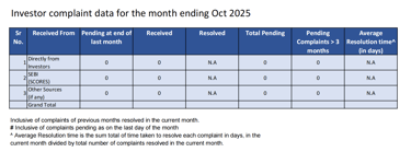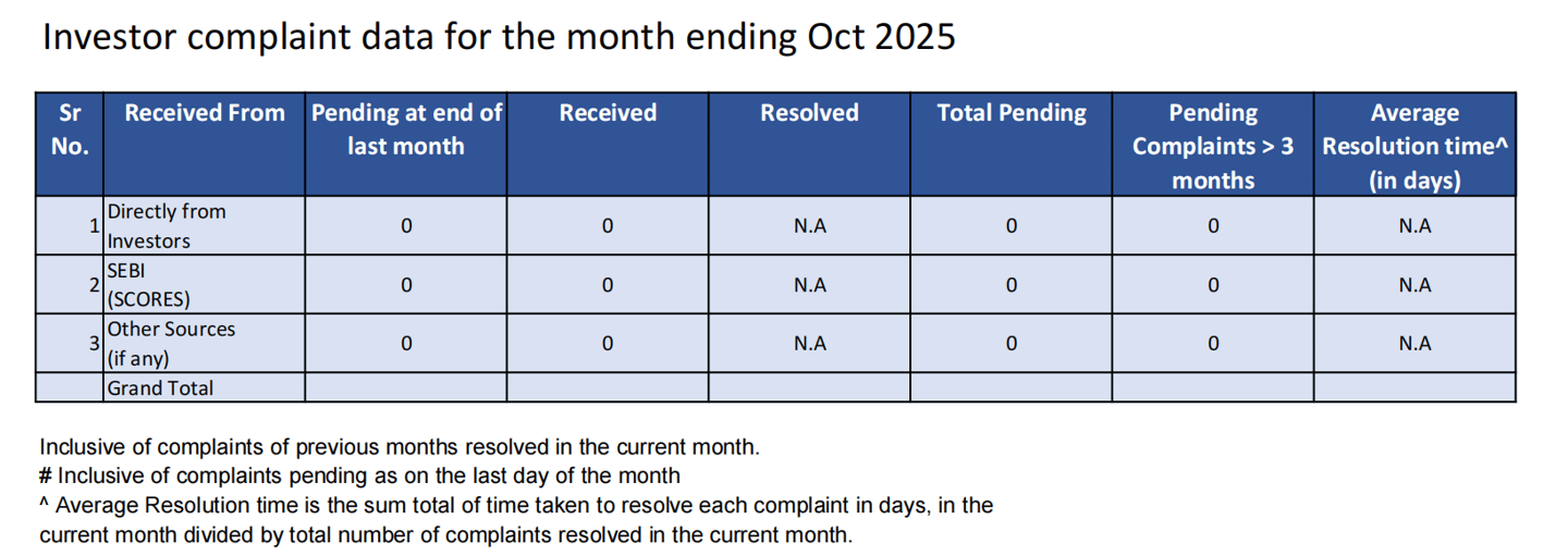 This page contains information regarding Investor Grievance Redressal Mechanism in accordance with SEBI Circular No.: SEBI/HO/IMD/IMD-II CIS/P/CIR/2021/0686 dated Dec 13, 2021.